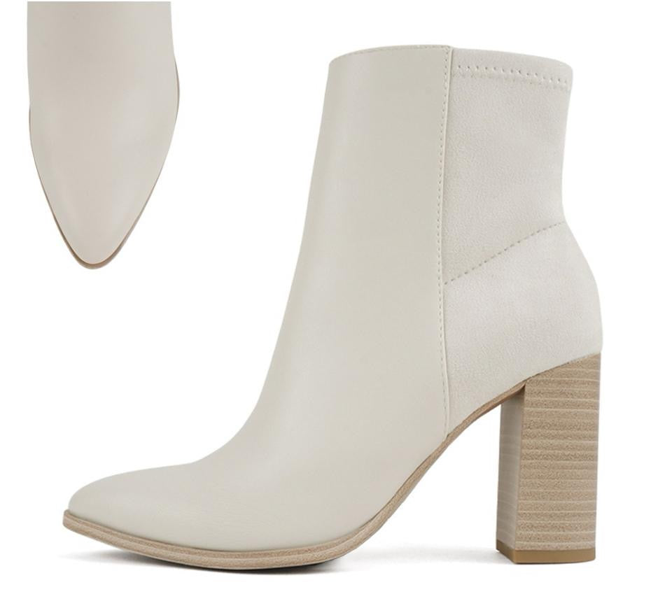 Elevate your outfit with these beautiful two-tone ankle boots that offer versatile elegance!